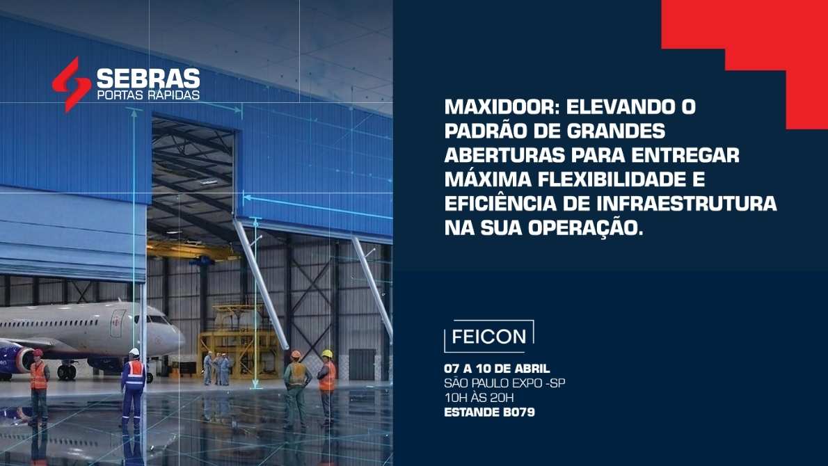Entre os dias 07 e 10 de abril de 2026, das 10h às 20h, a SEBRAS estará presente na FEICON, no São Paulo Expo (SP). Nossa participação neste ano tem um foco claro: apresentar ao mercado da construção e infraestrutura a Maxidoor. Convidamos você a nos visitar no Estande B079 para conhecer essa inovação de perto!