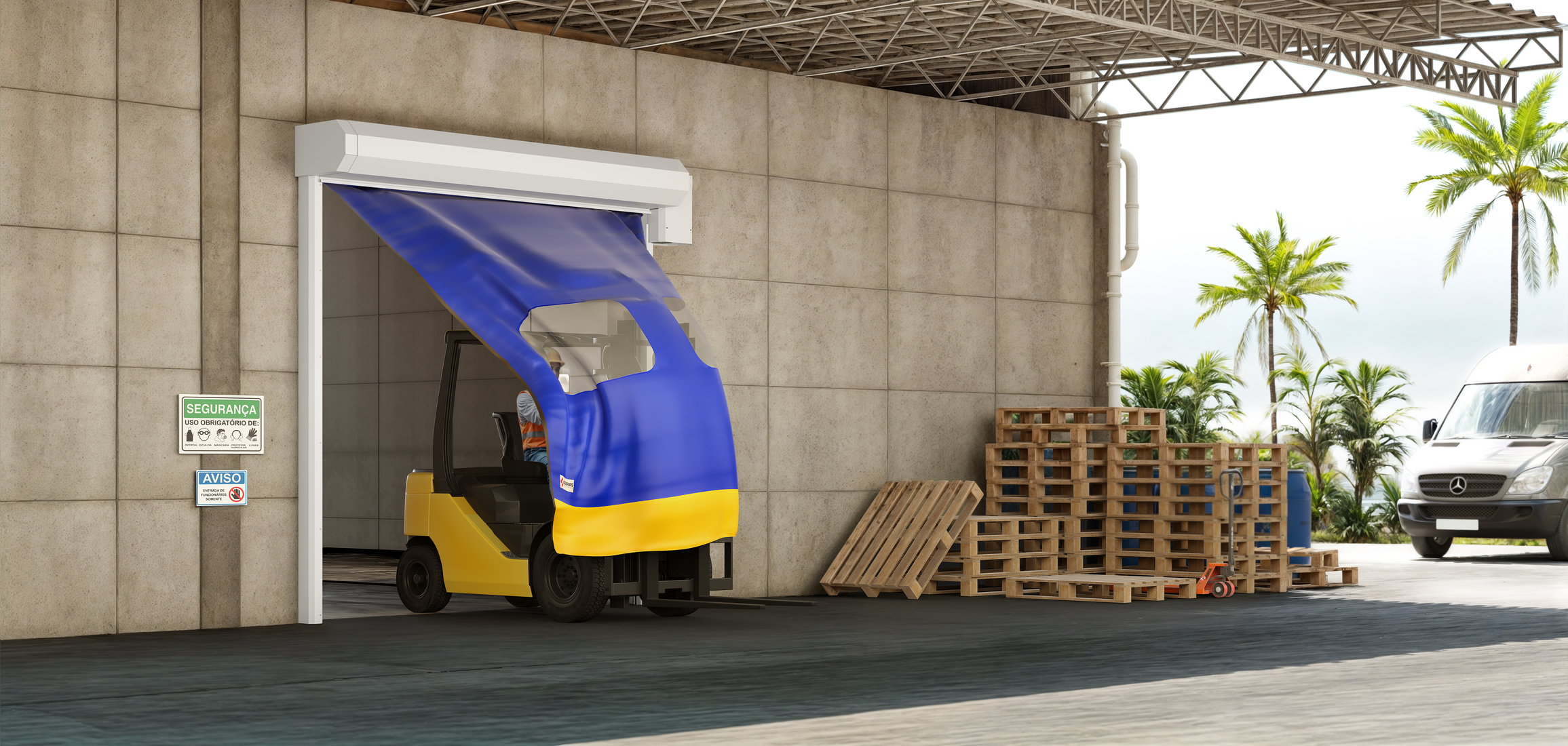 • Sem perfis rígidos ou barras, oferece mais segurança para seus colaboradores, minimizando riscos de acidentes