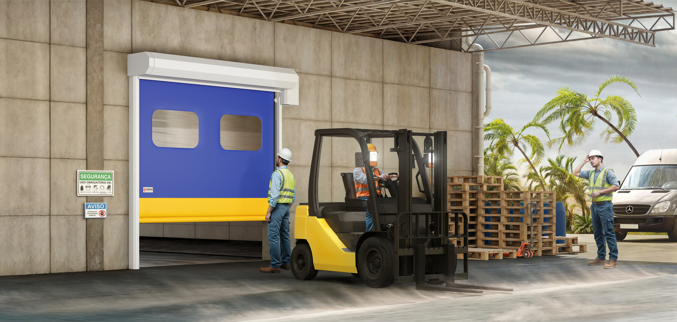 As portas Open Fast têm sistemas integrados que permitem um manuseio mais seguro para o trabalhador.
